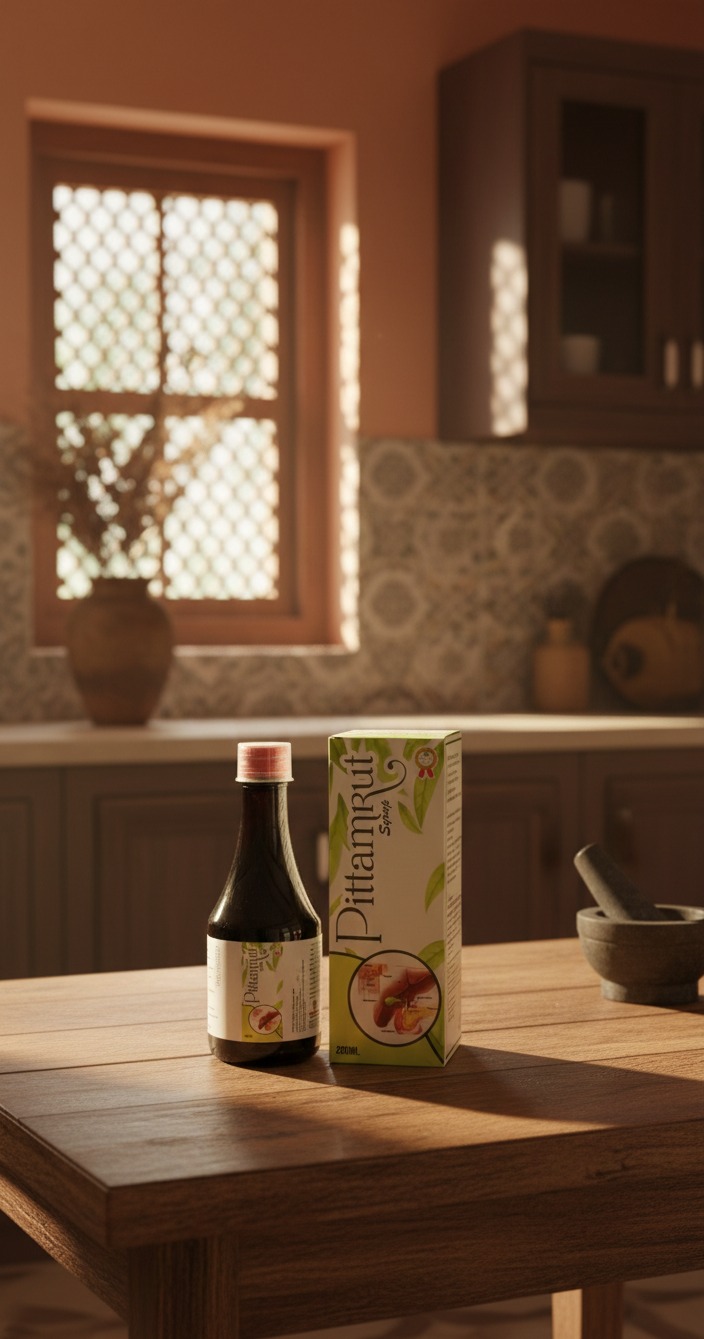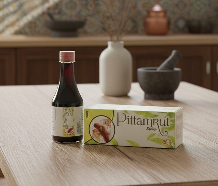 The Pittamrut Syrup should be taken regularly as per the dosage mentioned on the label or as advised by a healthcare professional. It is best consumed after meals with lukewarm water to support optimal absorption and effectiveness. Consistent use, along with a balanced diet, adequate hydration, and mindful eating habits, enhances results and supports overall digestive health. The gentle, non-habit-forming nature of the formulation makes it suitable for prolonged use under guidance.