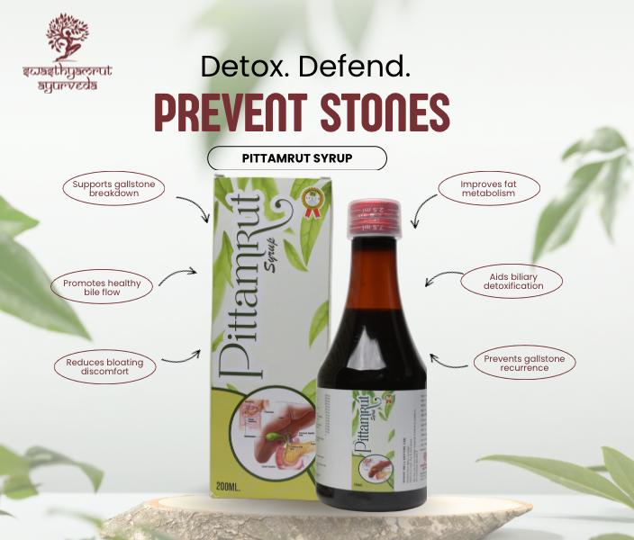 Our Pittamrut Gall Bladder Stone Syrup is a carefully crafted herbal formulation designed to provide comprehensive support for gall bladder health and the natural management of gall stones. Developed using a blend of time-honoured herbal ingredients and refined through modern quality practices, this syrup supports the body’s natural processes involved in bile regulation, digestion, and detoxification.
